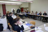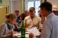 We then turned to some more complex 'page' poems: Feel Free by Nick Laird, The Artane BoysBand by Jess Traynor (both read by the authors), Aubade by Ocean Vuong (accompanied by footage of the Vietnam War), and the prose poem I loveYou by the Trinidadian poet, Vahni Capildeo. The poems were syntactically and lexically highly demanding, which led to a discussion about the choice of poems and the level of difficulty. Elaine also spoke about the question of how to introduce teenagers to poetic form. We were then divided into groups of six and given a "hat" or category by which to judge all the poems. For example, each person had to examine the poem according to how it displayed aspects of logic, emotion, optimism or creativity. One person had to play the 'devil's advocate' (putting forward counter- arguments), while another person had to 'manage' the discussion. We were then asked to rate the poems according to our "hat". Finally we were asked to decide which was the 'best' poem. An interesting exercise which makes the reader look at a poem from various perspectives.