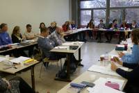 35 teachers attended this stimulating and wide-ranging workshop given by the Irish writer, Elaine Feeney. The aim of the workshop was to show how poetry and 'fiction poetry' (prose poems) can be used in the classroom with 'reluctant teenagers', to use Elaine's phrase. Emphasis was placed, not only on which types of material can be used, but also on how teenagers themselves can be encouraged to show their creativity and to develop their critical faculties. Participants were sent a number of texts in advance, which were then discussed during the workshop. Elaine also brought along a short story by the Irish short story writer, Claire Louise Bennett. So no lack of reading matter!